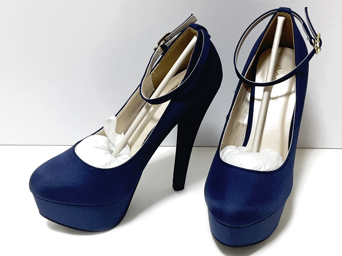 > 未使用品 送料無料 MIMINY PIMINY パンプス ハイヒール Mサイズ 紺 ミミニーピミニー ネイビー No7955