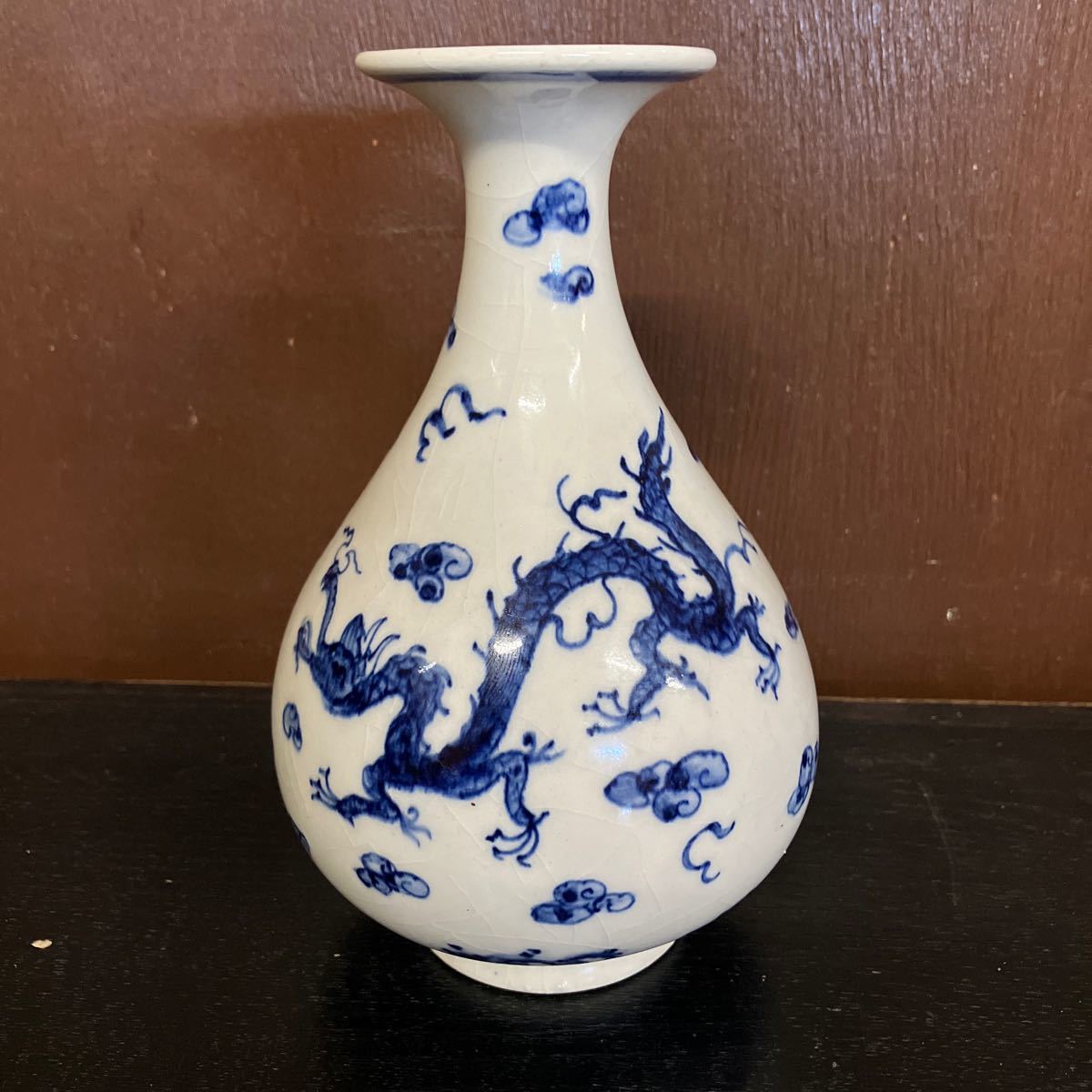 - 中国美術?鳳凰龍図白磁印判花瓶 高さ17.5cm