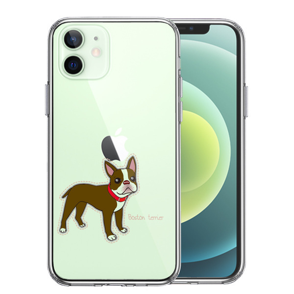 - iPhone12 ケース クリア ボストンテリア 1 スマホケース 側面ソフト 背面ハード ハイブリッド