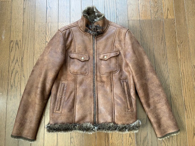 - ヤマト フェイク ムートン、ファー M 肩幅44㎝ 身幅53㎝ 着丈63㎝ 袖丈63㎝ ブラウン系 ライダース 防風 防寒 送料無料 底値