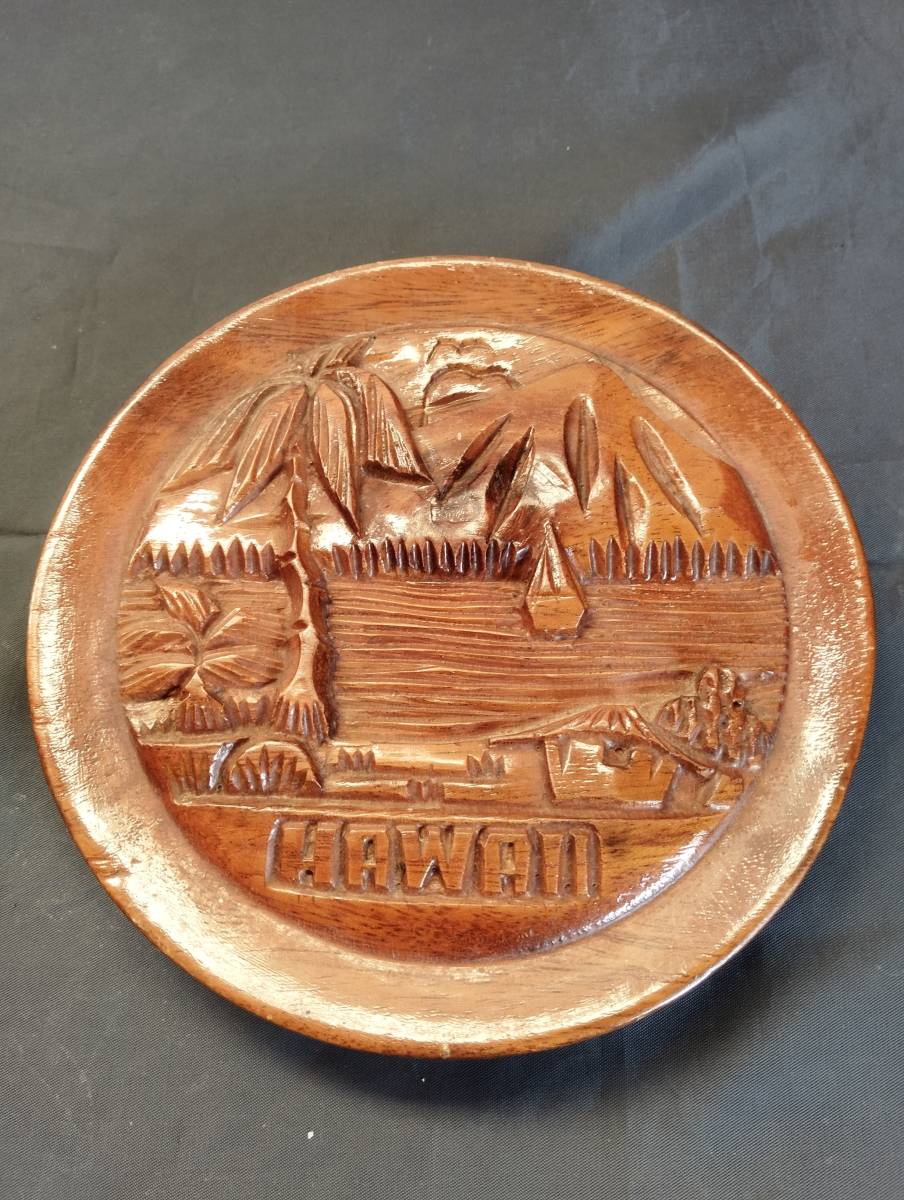 - ハワイ ヴィンテージ ウッド オーナメントプレート 木彫り 飾り皿 直径 インテリア レトロ オブジェ 1985年