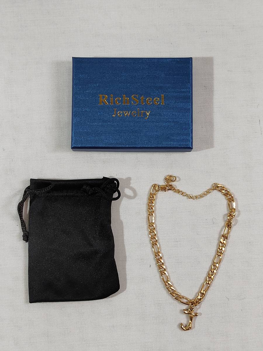 - 【1円出品】Richsteel アンクレット ゴールド イニシャルJ チャーム フィガロチェーン 調整可能 夏 ファッション