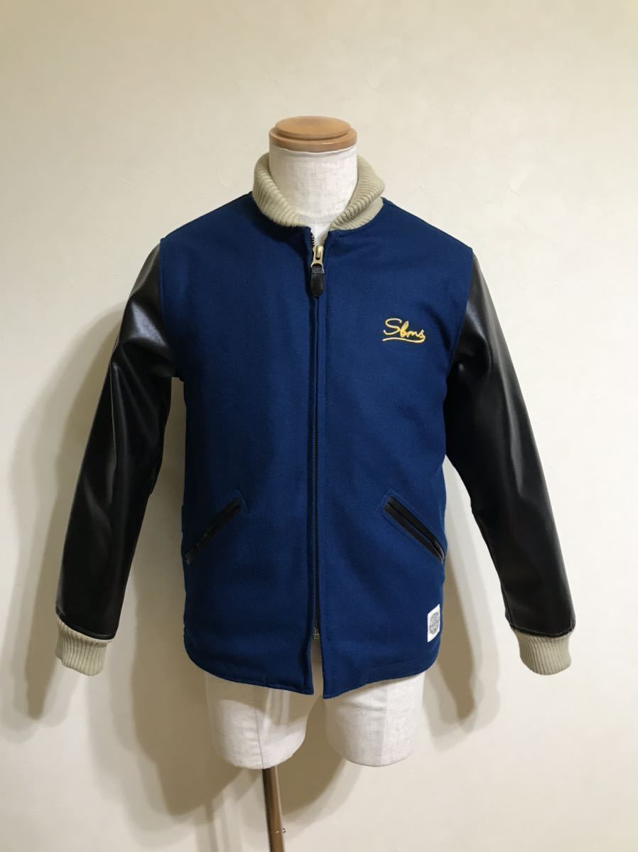 - 【美品】 SBMS スタジャン 切替し フェイクレザー チェーンステッチ アウター ジャケット サイズM 長袖 青 黒