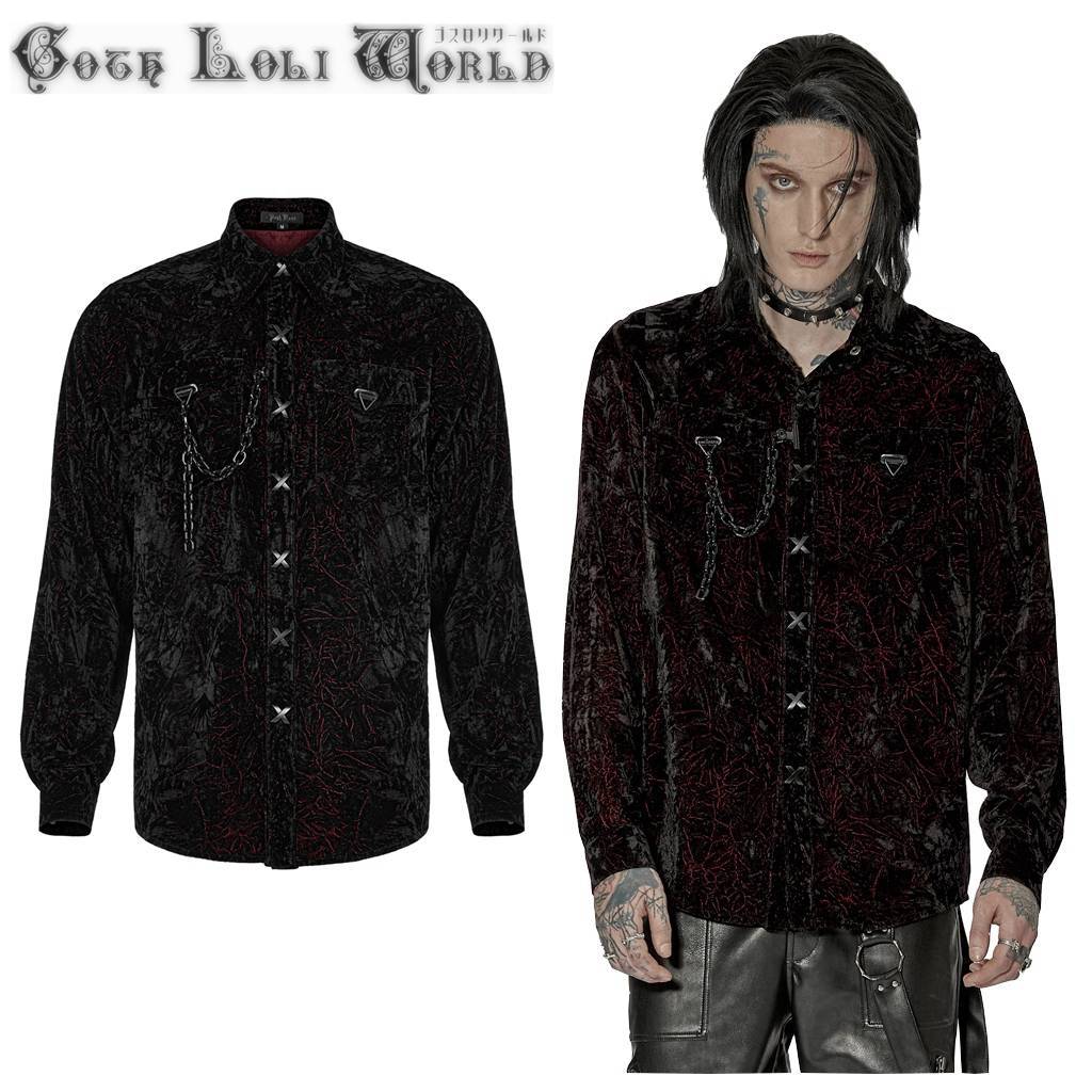 - WY-1441RD-M ワインレッドチェック付クロスボタンベルベットブラウス ゴスロリワールド ゴシック パンク ロック ロリィタ ビジュアル系 V系