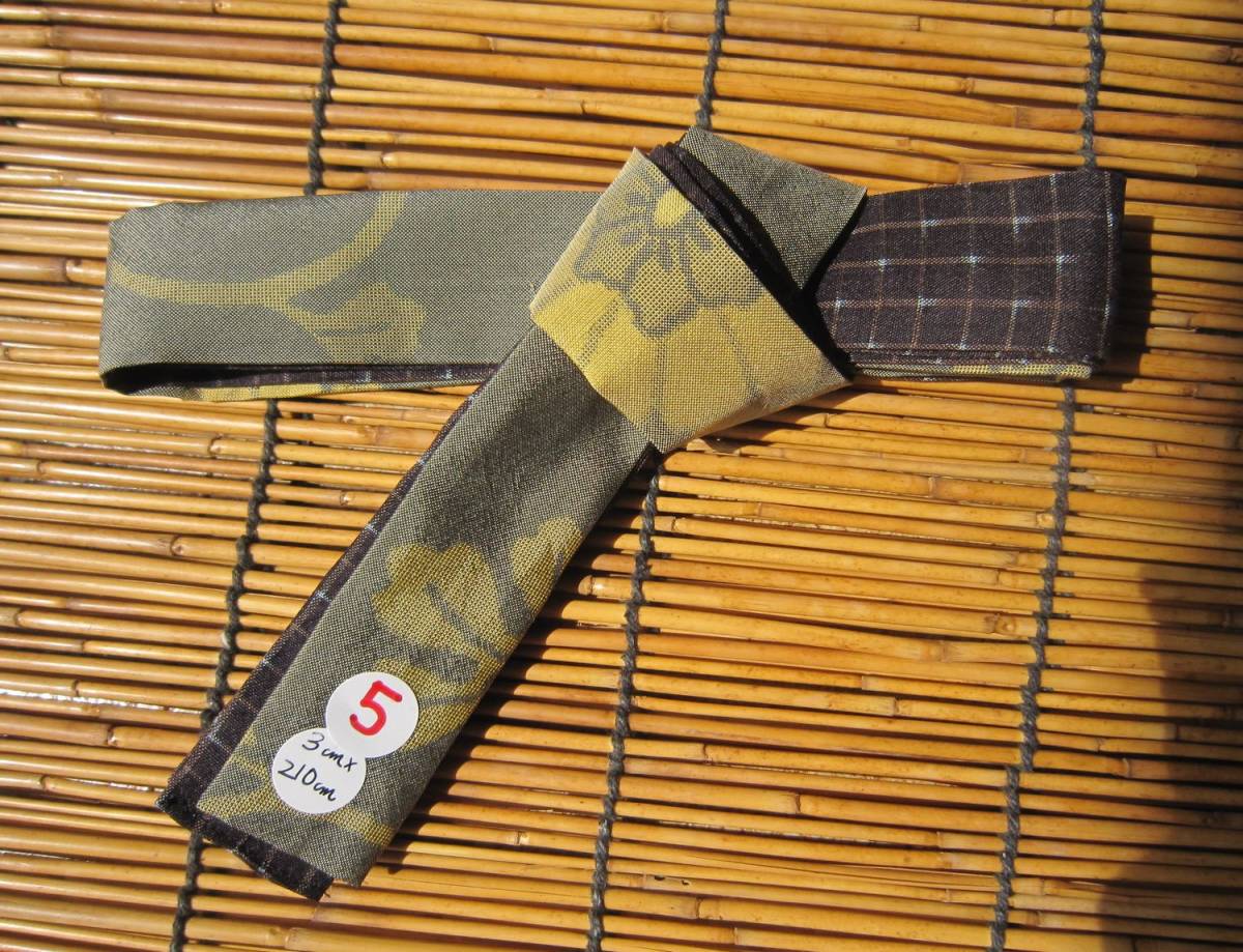 - ◇◆正絹・古布 格子の薄手紬×大島紬?花? リメイク タスキ掛け紐5-2 オリジナル