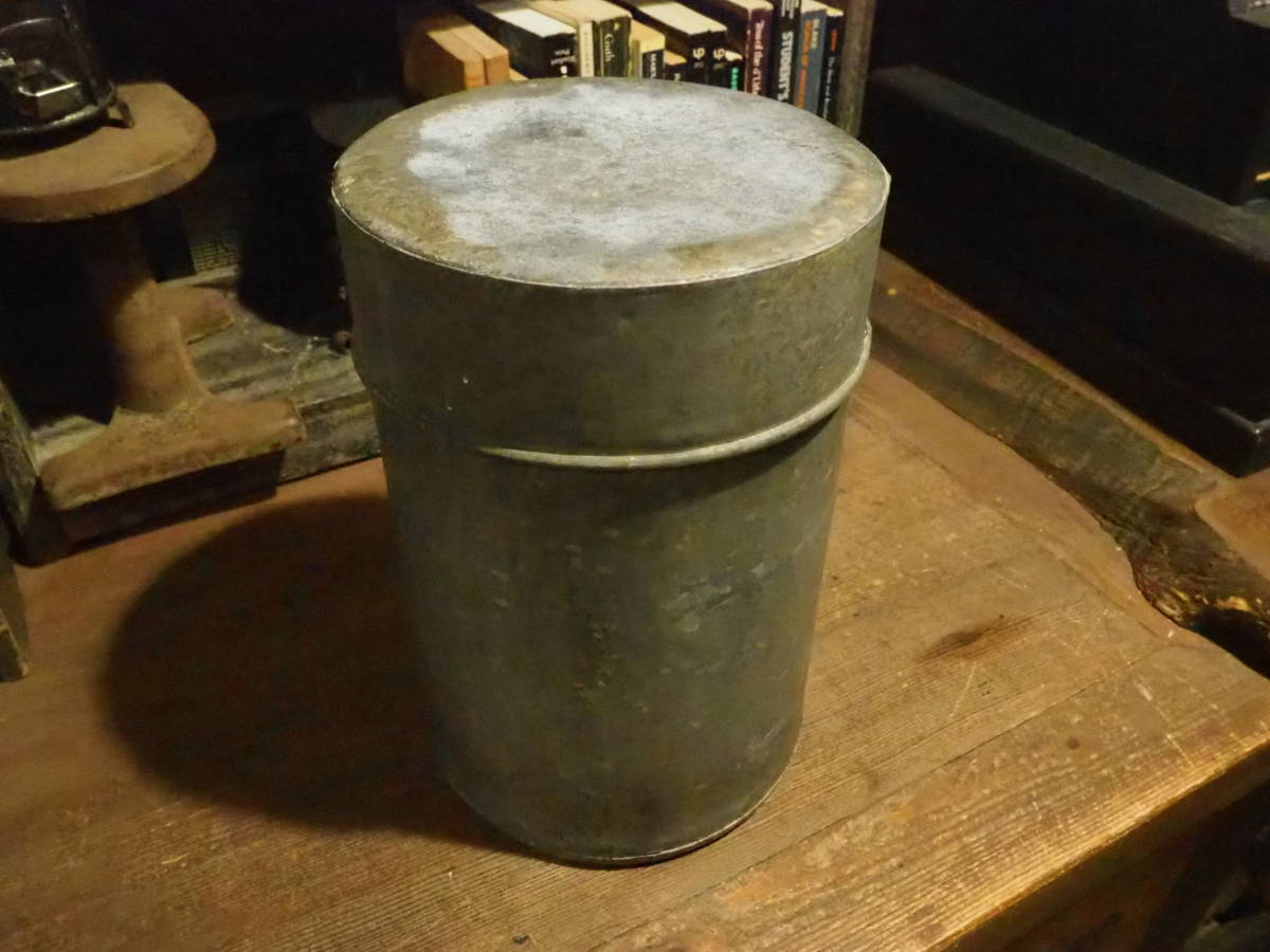 - 【古いブリキ缶】筒スチールインテリア玩具コレクションケース収納ケース古道具おもちゃ箱アンティーク昭和レトロインダストリアル骨董
