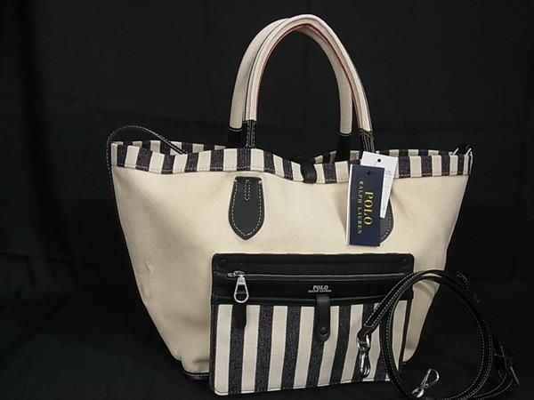 > ■新品■未使用■POLO RALPH LAUREN ポロラルフローレン キャンバス リバーシブル 2WAY ハンドバッグ ショルダー ライトベージュ系 BI0324