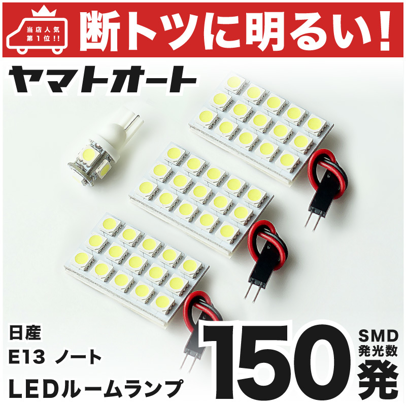 > ◆ノート MC後 LED ルームランプ E13 [令和6.1~] 日産 150発 4点 室内灯 車中泊 基板タイプ カスタムパーツ