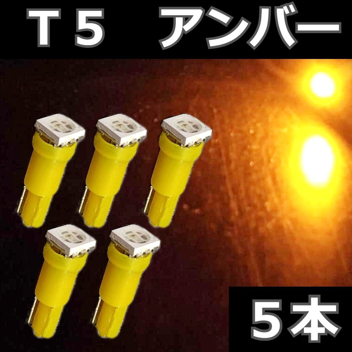 > T5 アンバー 5個セット★5050 LED 1SMD エアコン メーター スイッチ インジゲーター パネル球 球 ウエッジ 灰皿照明 インパネ