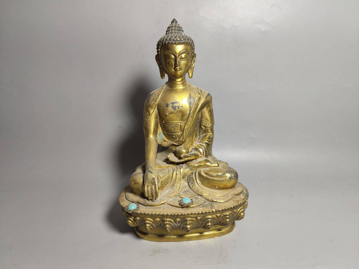 - 蔵友旧蔵出 銅製 塗金 寶石嵌 釋迦摩尼像 密宗密教 供養品 仏教美術品 zz
