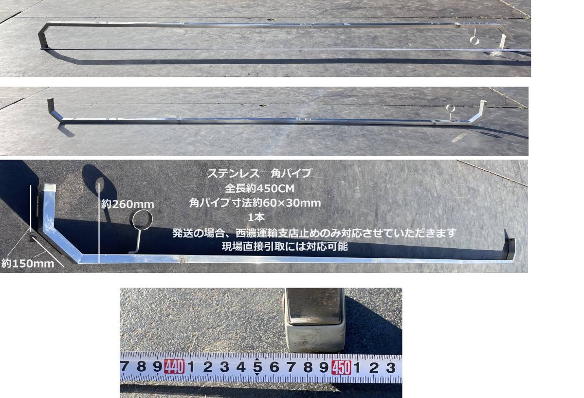 > フロンドサイドバンパー★4500mm★元大型車用★ステンレス製★角パイプ★営業所止め★即決★1本★サイドガード★デコトラ★角13A1