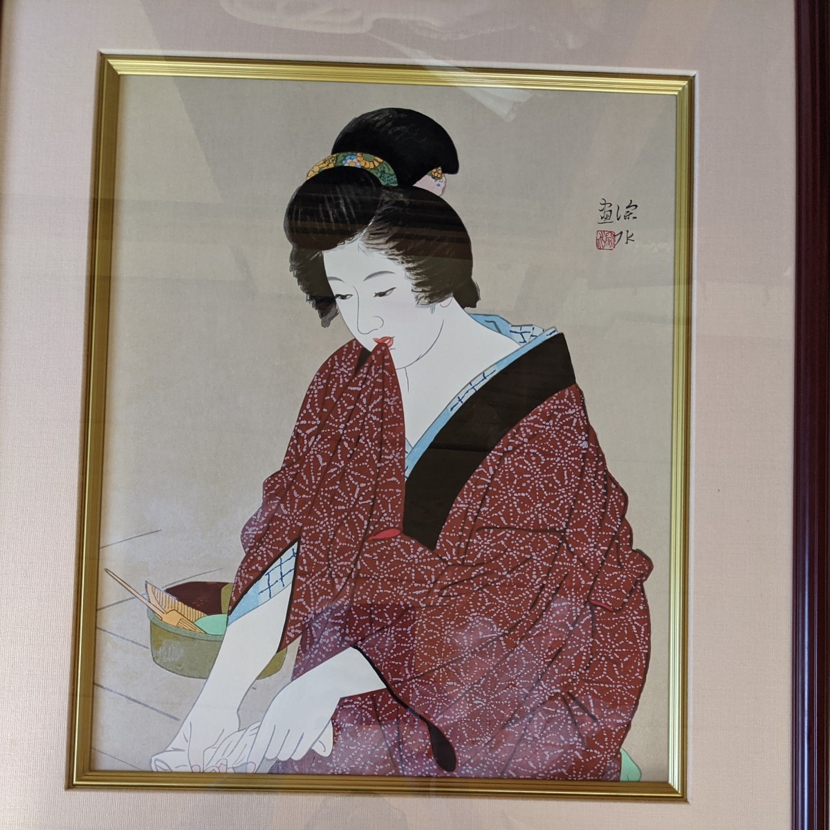 - 【模写】伊東深水 湯気 木版画 作品証明書付き