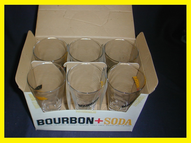 > BOURBON+SODA「フライトグラス」 6個【未使用品】 レトロ アンティーク ヴィンテージ SUNTORY バーボン プラス ソーダ