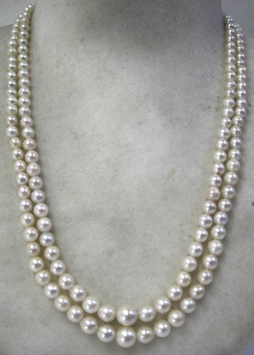 - 【東京 谷中 質屋おぢさん】極美品K18クラスプ ダイヤ3ヶ付パールネックレス2連アコヤ真珠トップ7mmUP