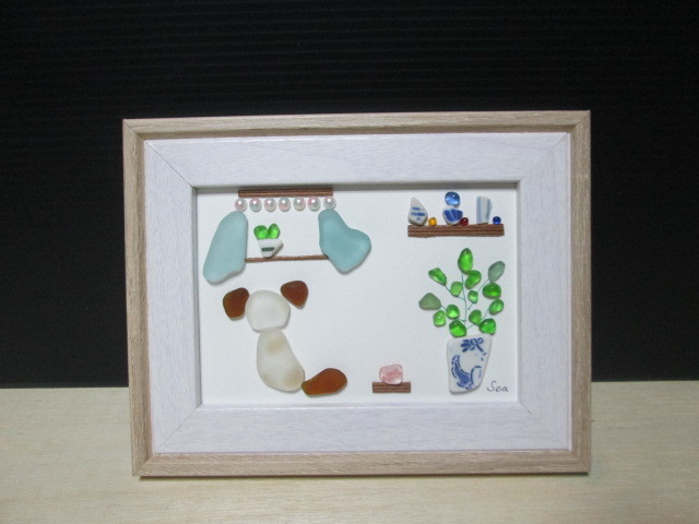 - ★シーグラスアート 犬 お留守番 インテリア ハンドメイド★