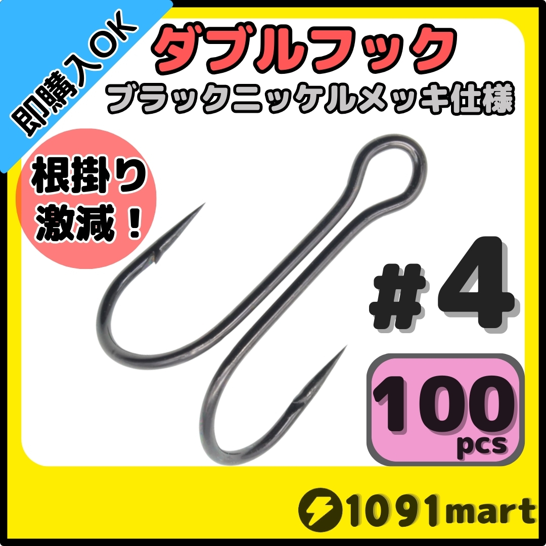 - 【送料180円】高炭素鋼 ダブルフック ブラックニッケルメッキ仕様 #4 100本セット ソルト対応 メタルバイブ バイブレーションに!