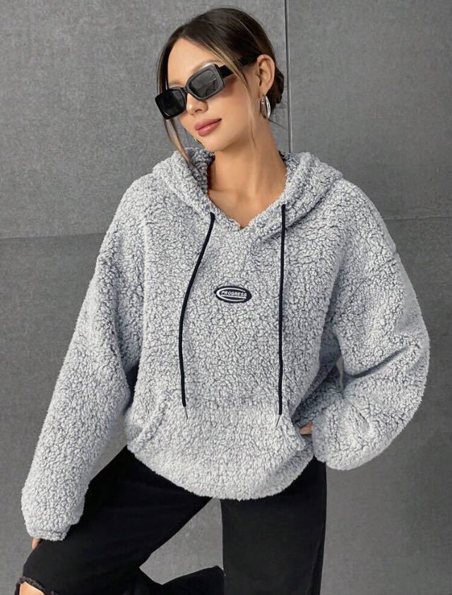 - 新品 ボアモコモコフリースパーカー グレー 男女兼用