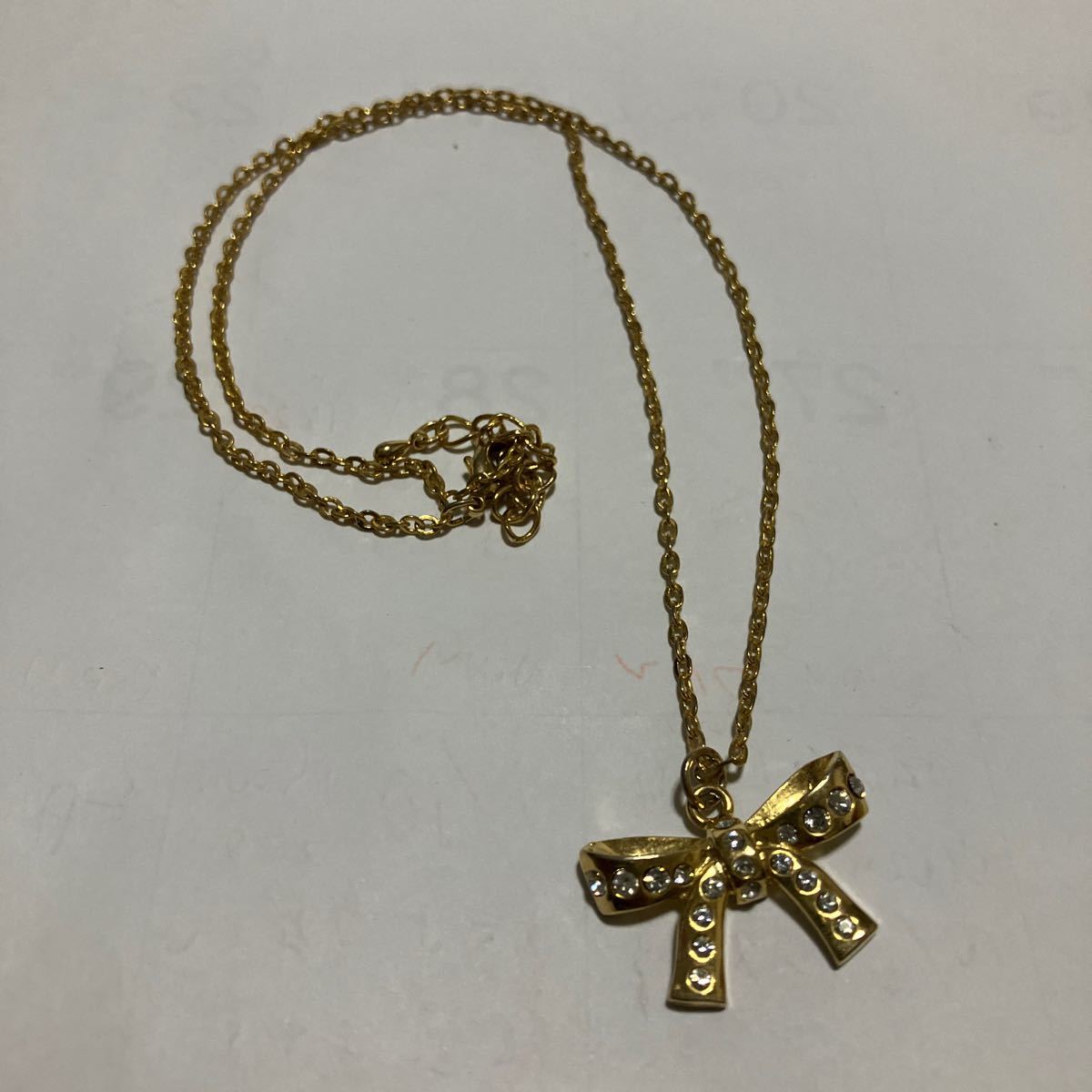 - リボンチャーム きらきら ペンダント ネックレス ゴールド(メッキ)チェーンの長さ約40cm