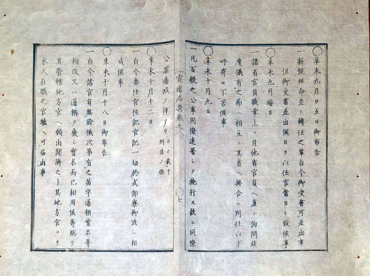 - f23030531〇明治布告布達 官途必携 神官官等表 神宮 祭主 宮司 官等表 太政官 正院 参議 卿 明治5年〇和本古書古文書
