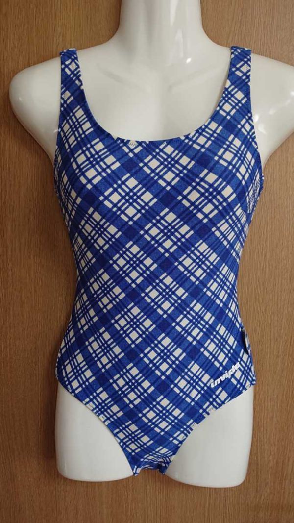 - ☆invicta☆青×白☆チェック柄のワンピース水着☆9M☆株式会社ヤマトヤ☆総裏地あり☆
