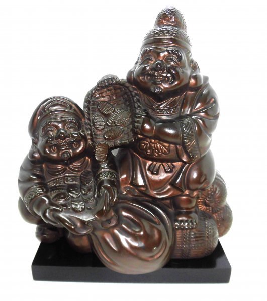 - TK32★恵比寿★大黒天★大黒様★七福神★置物★陶器★工芸品★2.3kg★台座付き★