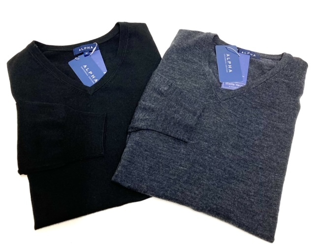 - 新品未使用◆ALPHA【アルファー】メンズVネックウールニット2枚セット Mサイズ<黒・グレー>