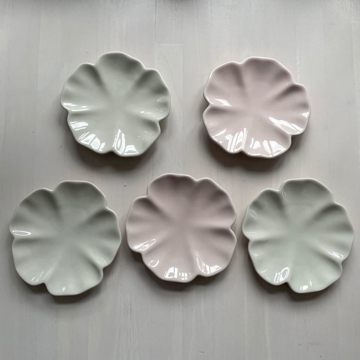 - 美品 ミニ小皿 5枚セット 陶器 ピンク ホワイト 豆皿コレクション お洒落 新生活にも 送料無料