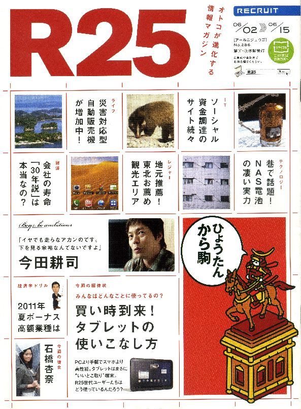 - リクルート情報誌「R25」NO.286今田耕司、石橋杏奈