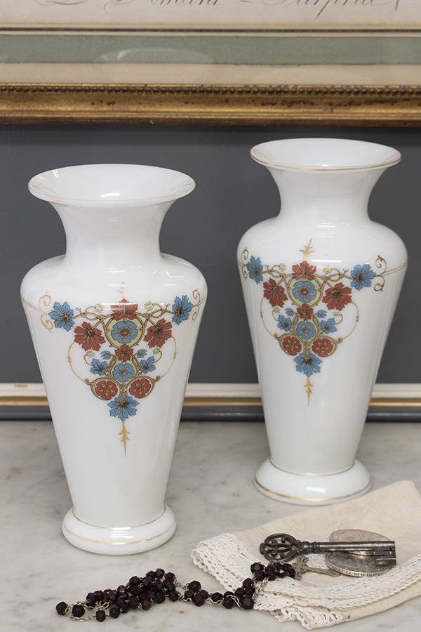 1900年ごろ作られたオパリンガラスのフラワーベースです。