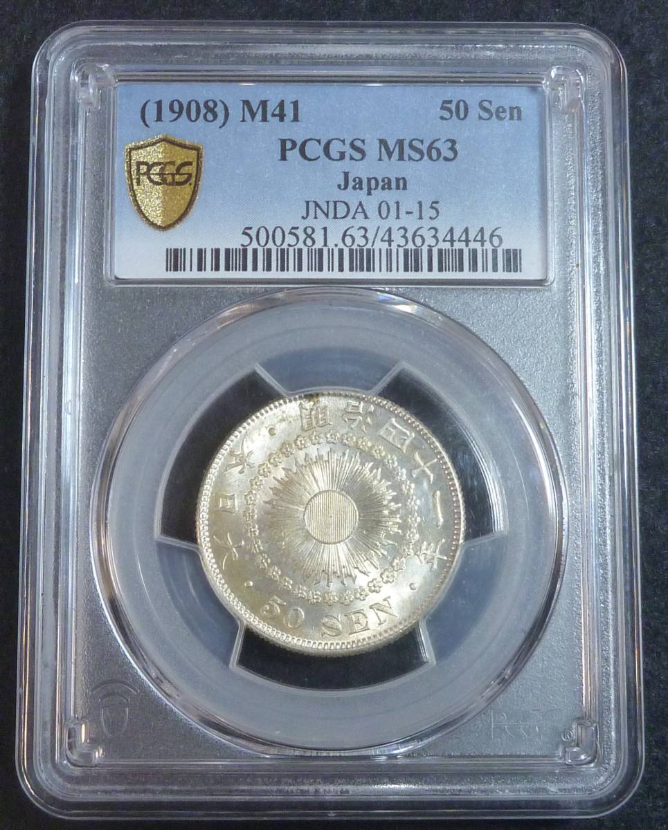- ☆★旭日50銭銀貨 明治41年 PCGS MS63★☆
