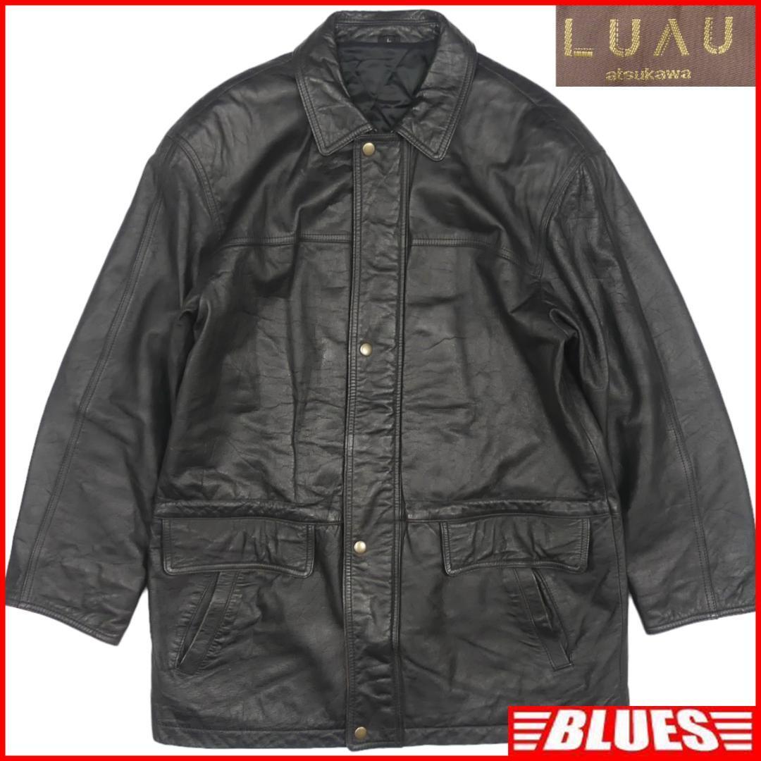 - 即決★LUAU atsukawa★メンズL レザーステンカラーコート カーコート ルアウ 黒 本革 ジャケット 本皮 革ジャン ジャケット