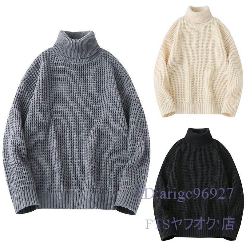 - A1562☆新品ニット セーターハイネック メンズ カットソー 無地 長袖 プルオーバー ゆったり 紳士 アウター 3色選ぶ/グレー/2XL