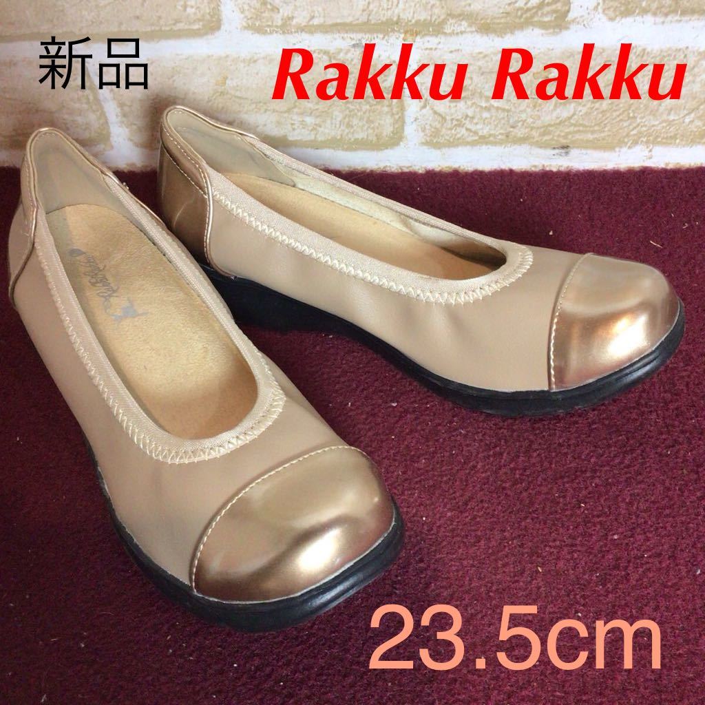 > 【売り切り!送料無料!】A-346 Rakku Rakku!パンプス!23.5cm!ぺたんこシューズ!ベージュ!ゴールド!かわいい!新品!