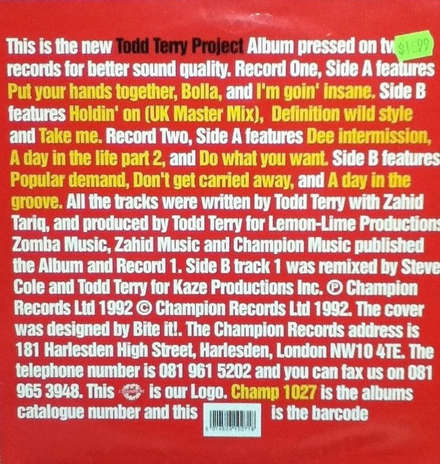- 【廃盤2LP】Todd Terry Project / Todd Terry Project Album