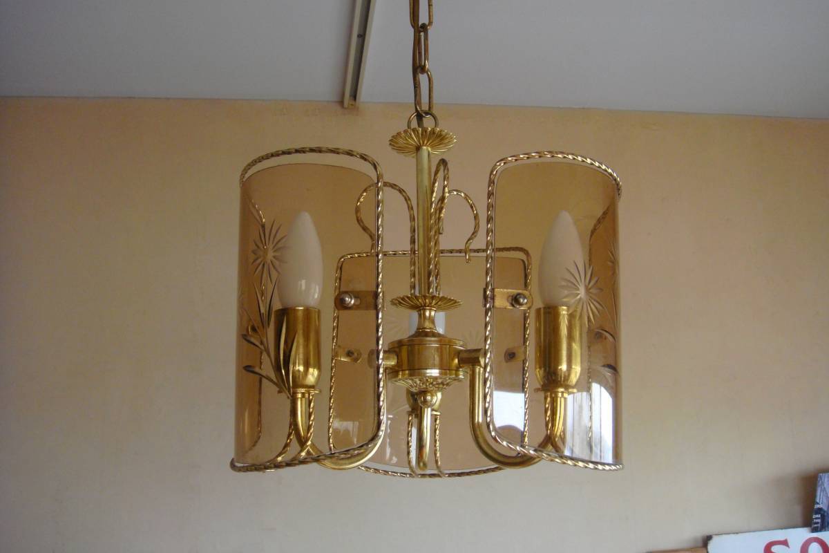 > ◆ フランスヴィンテージ 三灯シャンデリア 噴水型装飾 曲面のガラスガード 希少デザイン 店舗什器 ショップやサロンにも最適 世田谷発送