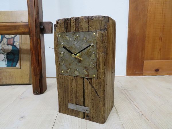 - 【流木/漂着物/鉄/真鍮/アート】 作品名:OKIDOKI002E 置き時計 検索用⇒ コチコチ音がしない/スイープ型/クオーツムーブメント使用/E0218