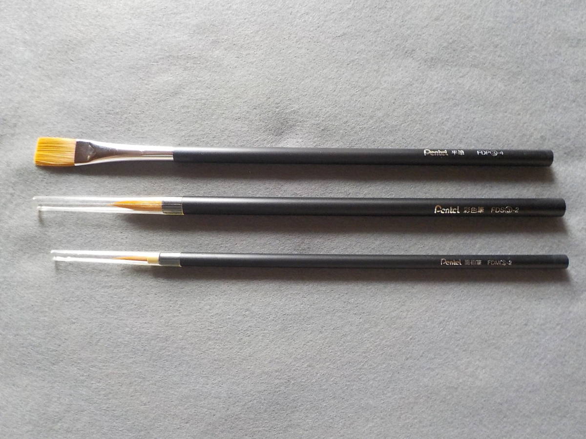 - ★送料210円★未使用★ぺんてる★Pentel★デザイン筆★平筆4号★彩色筆2号★面相筆2号★3本セット★