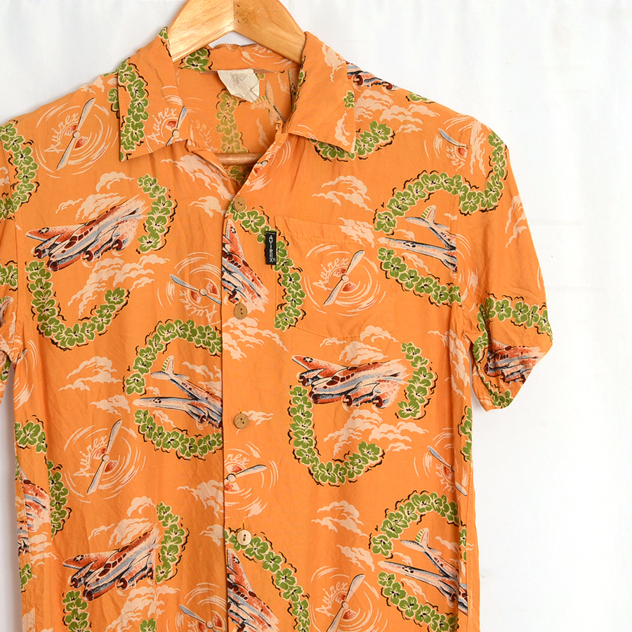 - AA200 アヴィレックス AVIREX アロハ 半袖シャツ ユース L (S) 肩幅40 爆撃機 メール便可 xq
