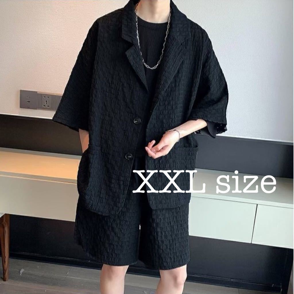 - セットアップ ジャケット パンツ 2点セット 部屋着 ワッフル ルームウェアジャケパン 上下セット ショートパンツ 黒 ブラック XXL