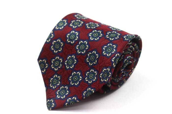 - クリスチャンディオール シルク 花柄 小紋柄 幾何学模様 ブランド ネクタイ メンズ ワインレッド Christian Dior