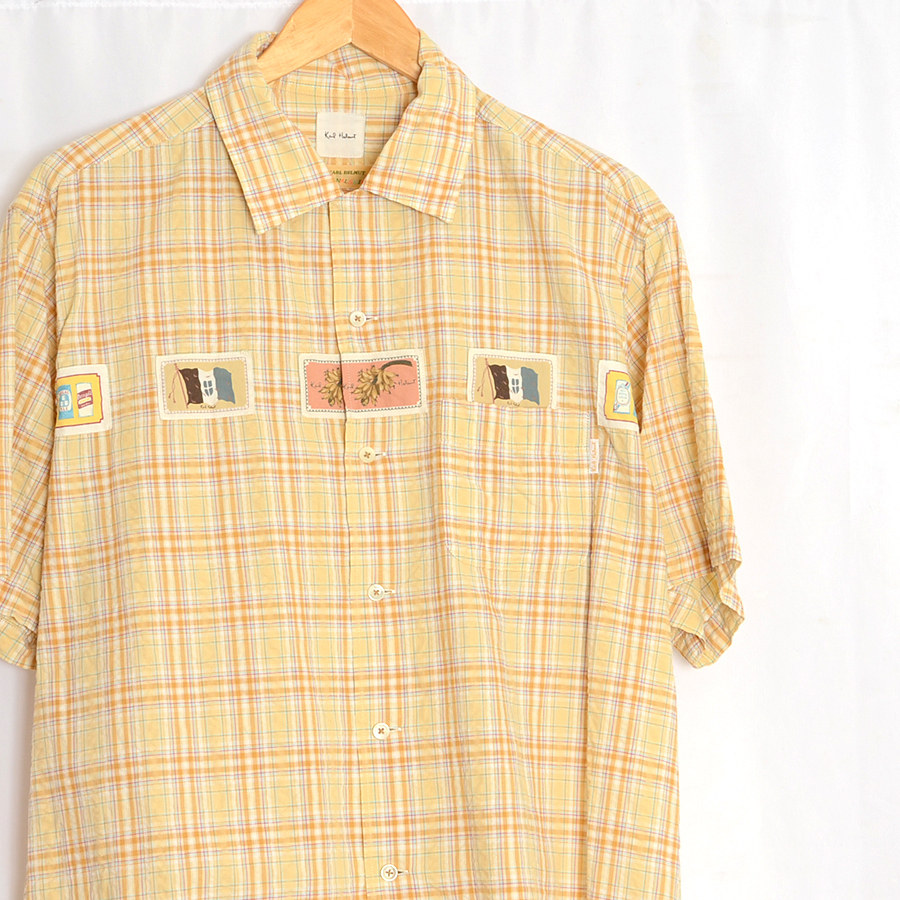 - KS238 カールヘルム KARL HELMUT 半袖シャツ M 肩幅48 しわ加工 ラベル メール便発送可 xq