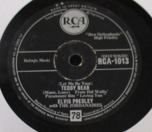 > ★ 78rpm Elvis Presley With The Jordanaires (Let Me Be Your) Teddy Bear / Loving You [ UK'57 RCA-1013 ] SP盤