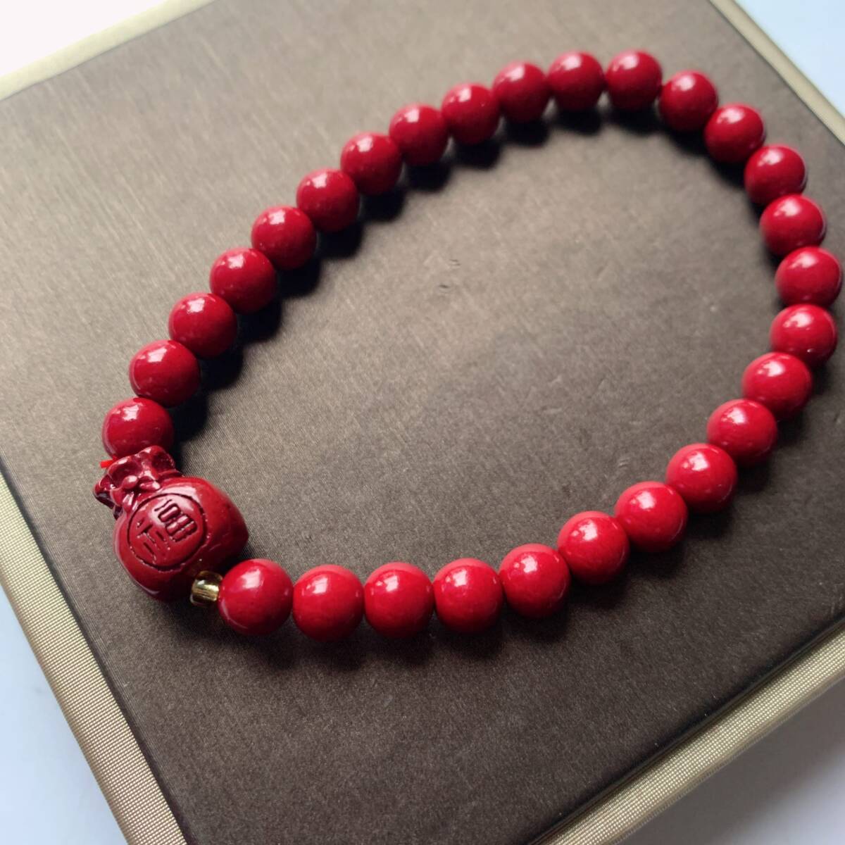 > ◇シナバー(辰砂)◇金袋形◇ブレスレット◇パワーストーン◇巾着袋付き◇プレゼント028B22208