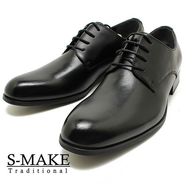> 箱付き新品★日本製x本革/S-MAKE★プレーントゥ/ビジネスシューズ【25.5/EEE/黒】歩きやすい!名ブランド品質◆n7319