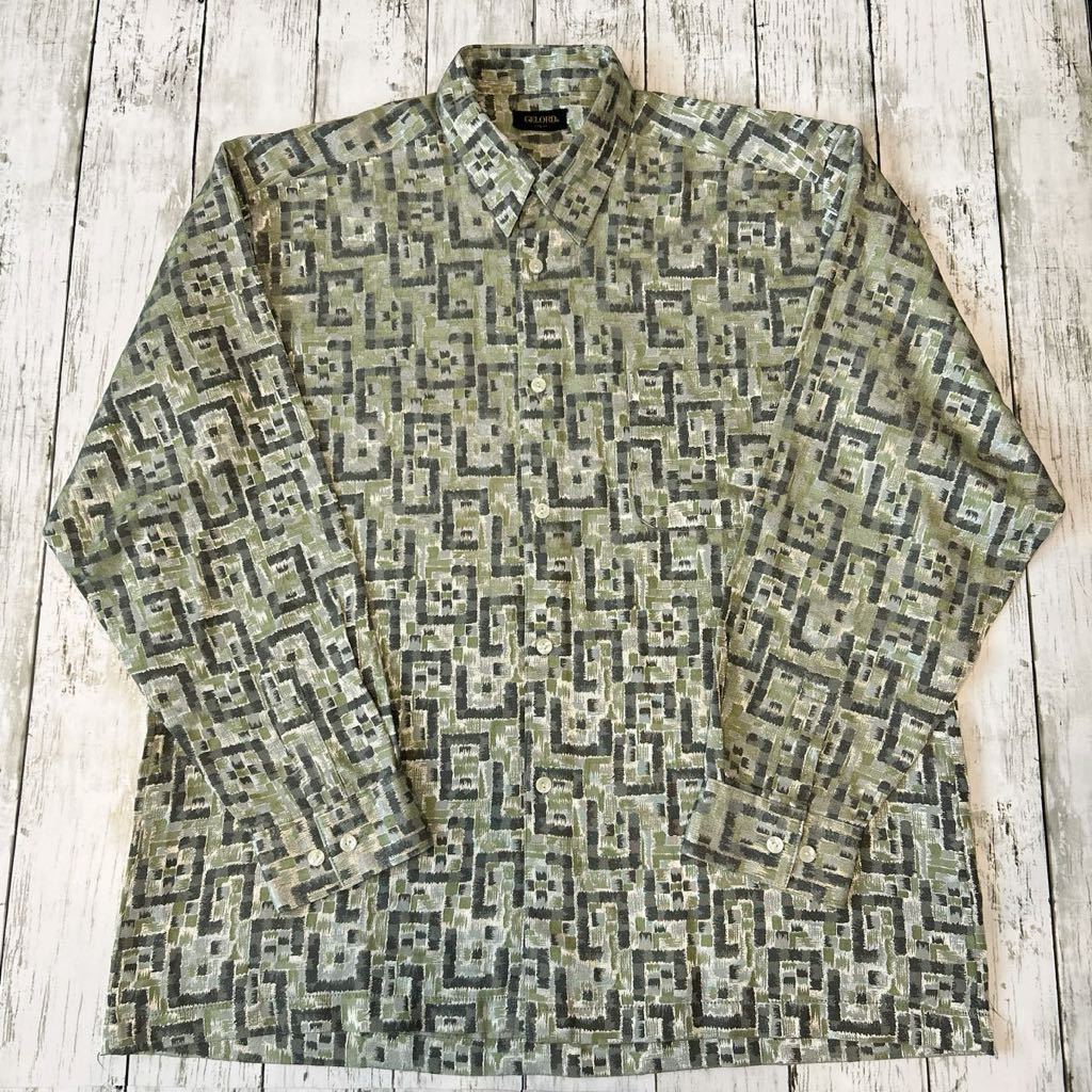 - GELORD 総柄 柄シャツ レトロ アート ビンテージ 長袖シャツ ポリエステル65% レーヨン35%