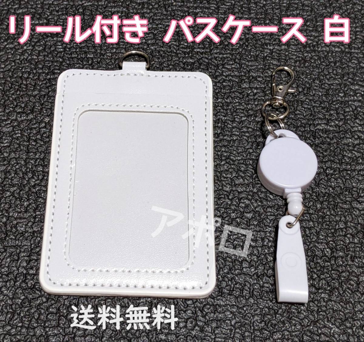 - ●普通郵便発送● リール付き 白色 パスケース 白 ホワイト B
