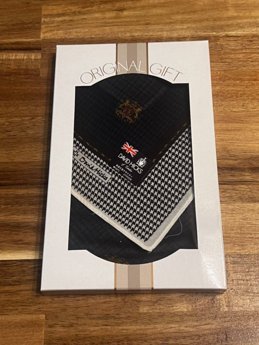 - 未使用品 DAVID HICKS デービッドヒックス ハンカチ ネイビー 紺 千鳥格子
