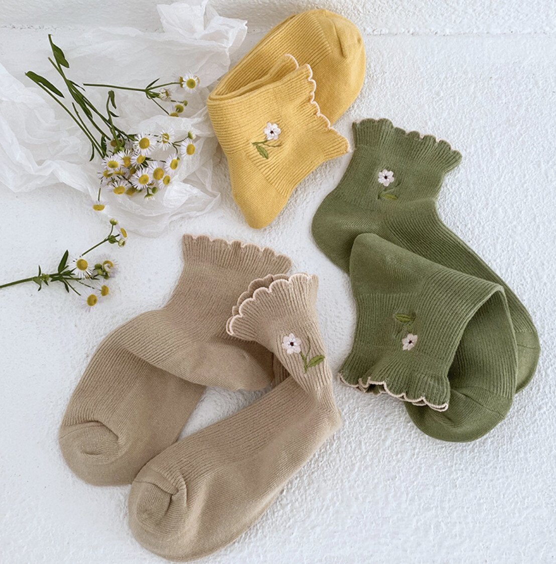 - NEW! 春夏 新作 レディース かわい 花柄 カール 靴下 5点セット BQ69