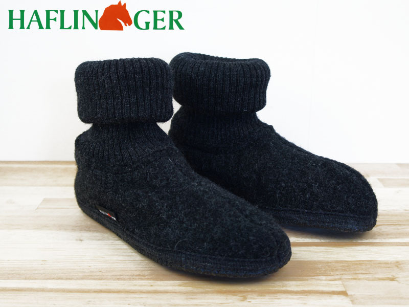 - 未使用 ドイツ HAFLINGER ハフリンガー* ルームシューズ チャコール 38 6615 レディース 足首ニットで暖か ウール スリッパ