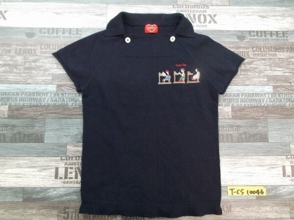 - Pual ce cin ピュアルセシン レディース クロスステッチ ニット ポロシャツ 紺